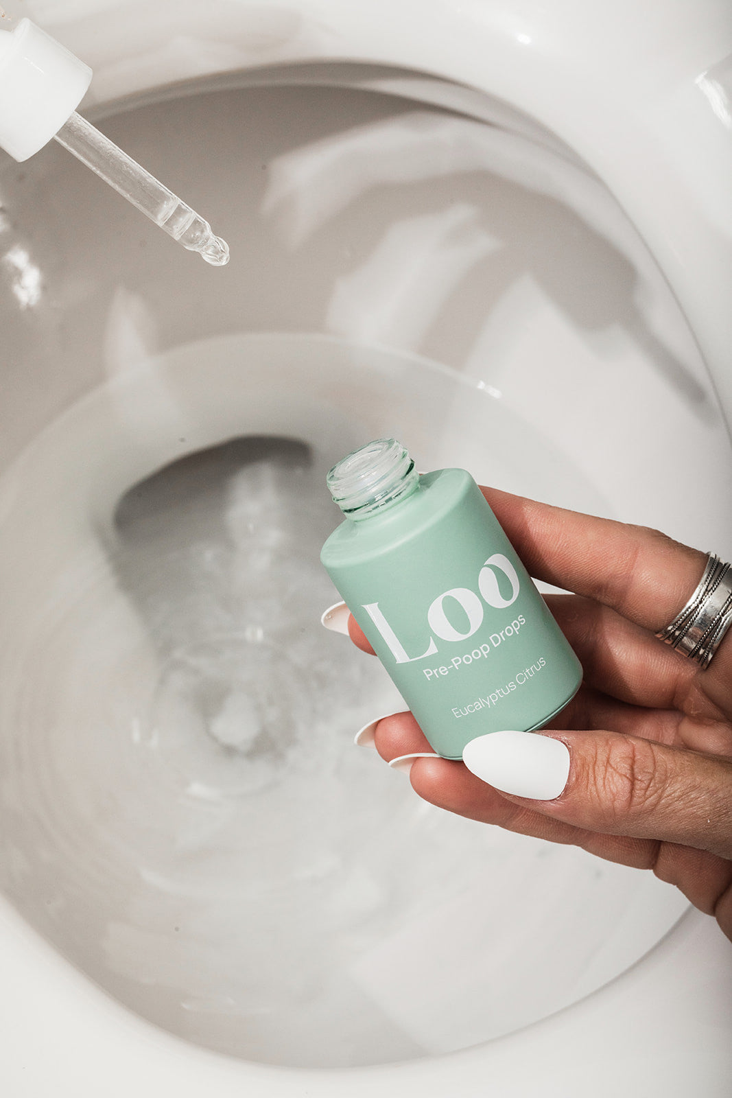 Loo Drops are pre-poop drops that you dispense in the toilet bowl before you do your business. Simply shake the bottle, dispense 4-6 drops in the water to create an odor blocking barrier on the surface and do your do.
